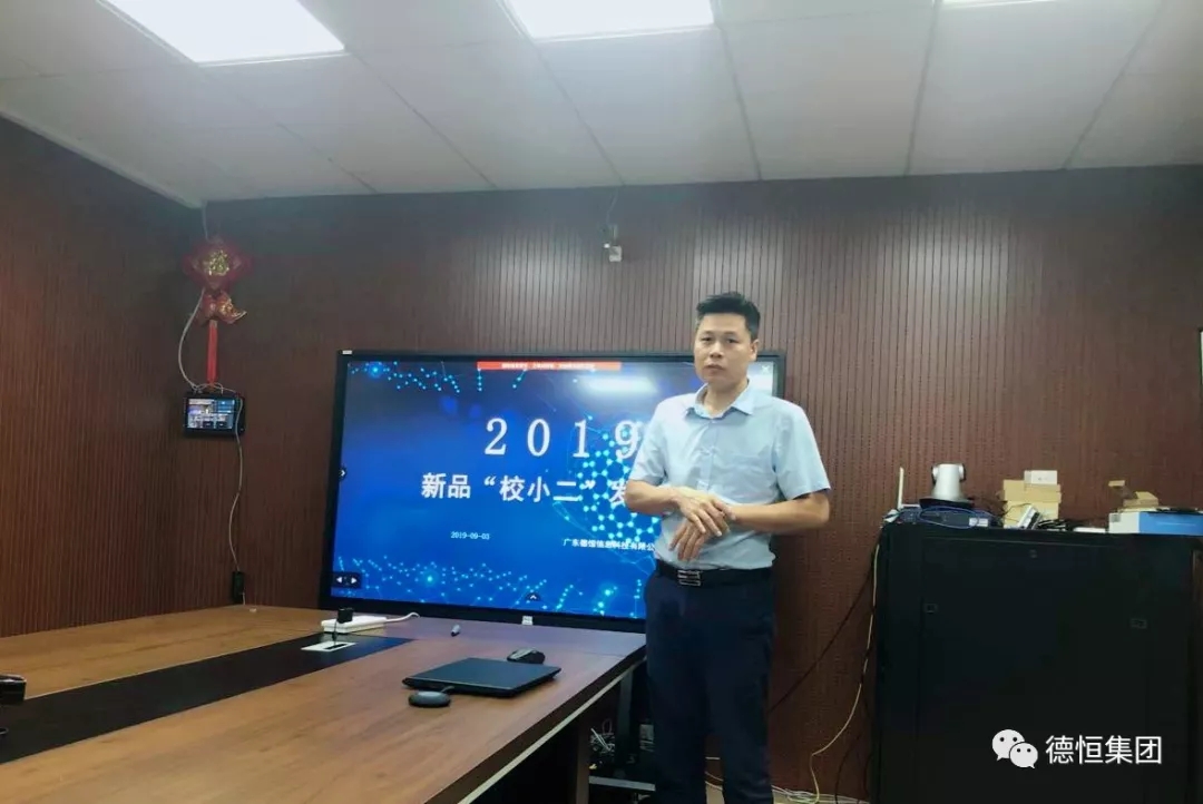 2019年9月3日上午,德恒科技“校小二智校管理平臺(tái)V2.0”新產(chǎn)品發(fā)布會(huì)在公司會(huì)議室隆重召開,董事長(zhǎng)何忠,總經(jīng)理溫小波,研發(fā)總監(jiān)梁田敬,營(yíng)銷總監(jiān)莫馬得出席了本次發(fā)布會(huì),宣布以“智慧校園”為方向的校小二系列產(chǎn)品全新出爐!