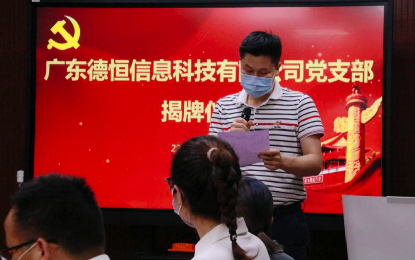 陳桃清指導(dǎo)員宣讀《關(guān)于同意成立中共廣東德恒信息科技有限公司支部委員會(huì)的批復(fù)》