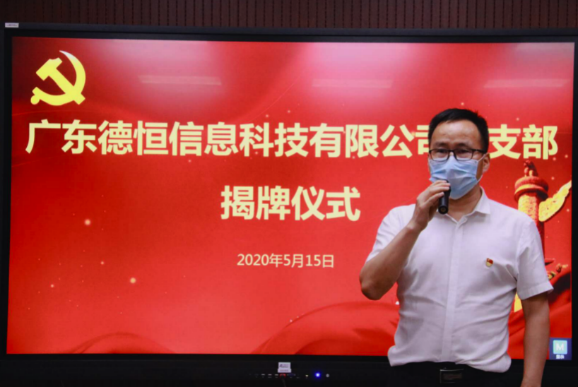 2020年5月15日下午,廣東德恒信息科技有限公司黨支部揭牌儀式在公司會(huì)議室圓滿完成。德恒科技董事長(zhǎng)、總經(jīng)理兼黨支部書(shū)記及其他中共黨員同志參加了本儀式,同時(shí)榮幸邀請(qǐng)到科學(xué)城園區(qū)黨支部書(shū)記萬(wàn)紹山、王婷婷、朱志彬、黃偉華出席了本次揭牌儀式。